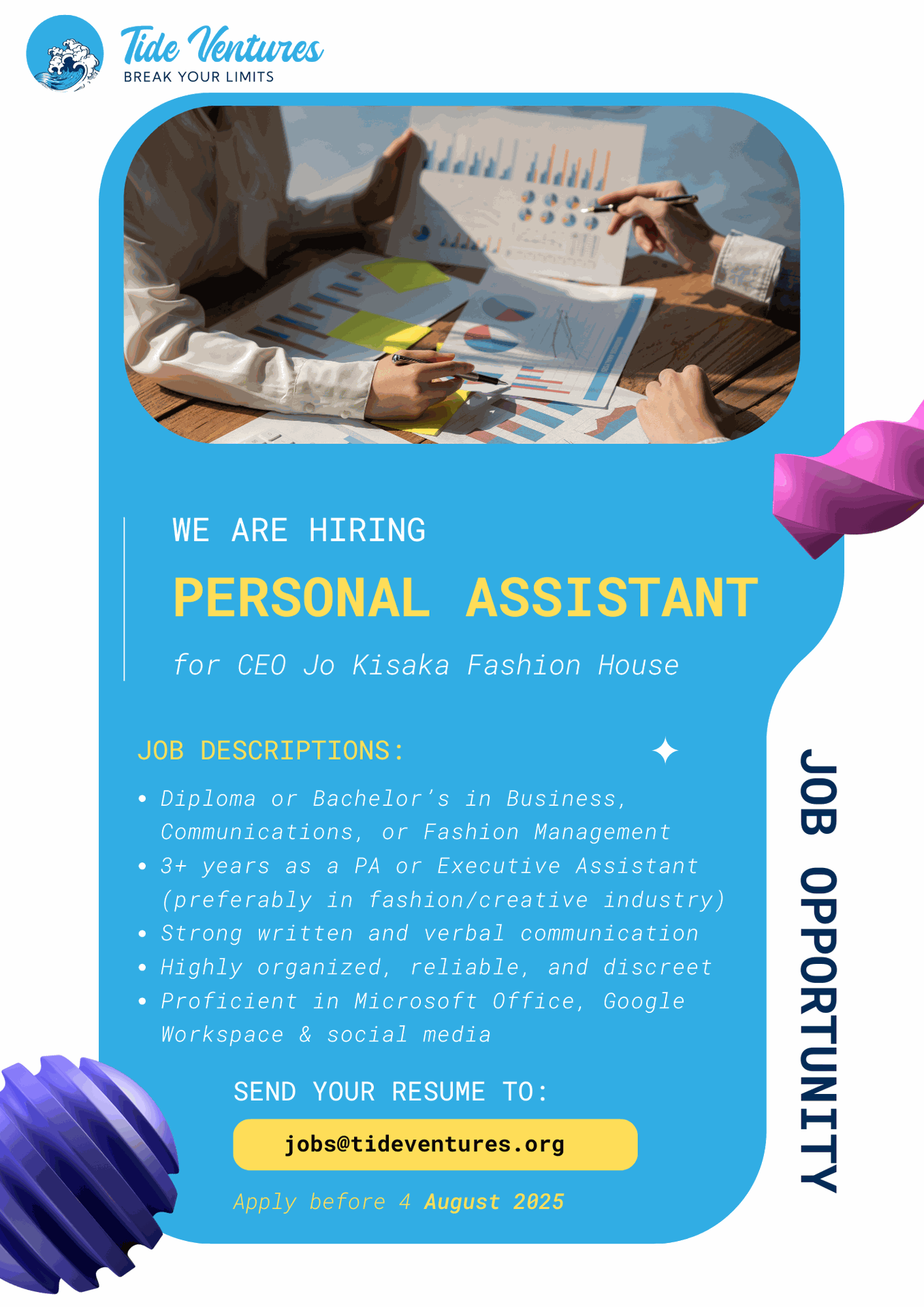 Working closely with Jo Kisaka means becoming part of a growing movement that is reshaping African fashion and giving voice to untold stories. This is more than just a PA role—it’s a front-row seat to visionary leadership and a chance to contribute meaningfully to a purpose-driven brand.